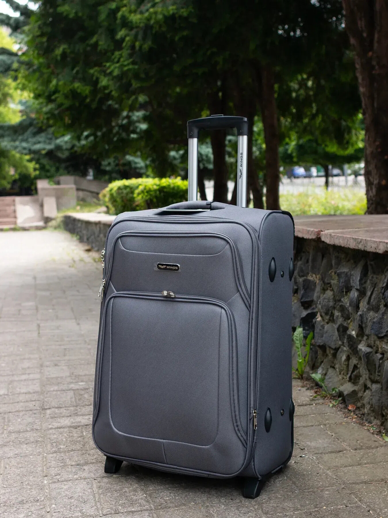 Велика польська дорожня валіза на двох колесах Wings (Вінгс) зроблена з надійного і міцного синтетичного тканинного матеріалу - поліестер марки 1200D. Цей матеріал легкий, зносостійкий, еластичний, не промокає. Металевий каркас додає жорстку форму валізи - ви можете не боятися його максимально навантажити.