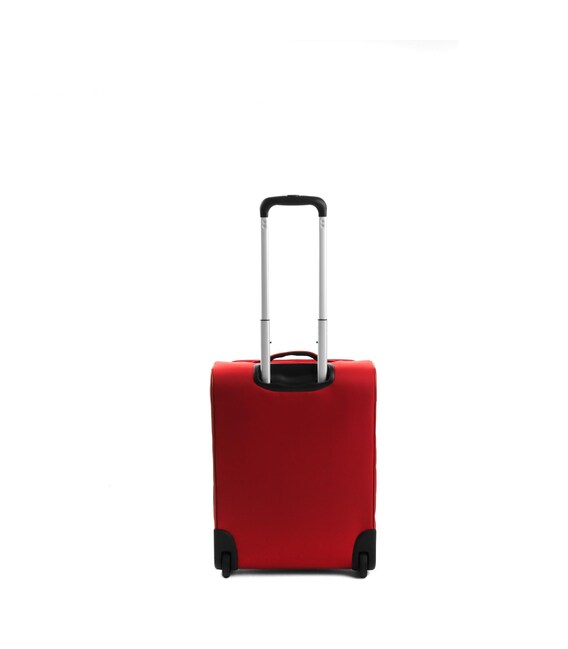 Валіза оснащена двома міцними колесами. На верхній панелі розташована текстильна підйомна ручка, для зручності переміщення є телескопічна ручка. На фронтальній поверхні є глибока кишеня, що закривається на блискавку, а також невелика кишеня на блискавці з двома бігунками і стримуючими кутами.