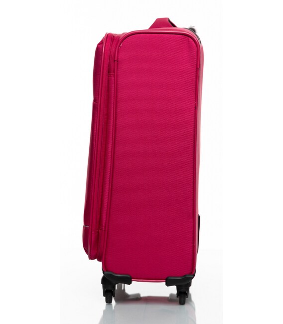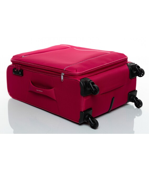 Середня валіза виготовлена з нейлону - міцного і зносостійкого матеріалу, оснащена чотирма маневреними колесами, зовні має кишеню на блискавці. Також, виріб має систему розширення, завдяки якій є можливість збільшити обсяг валізи; просту і практичну внутрішню організацію з двома відсіками. Чемодан володіє місткістю і функціональністю.