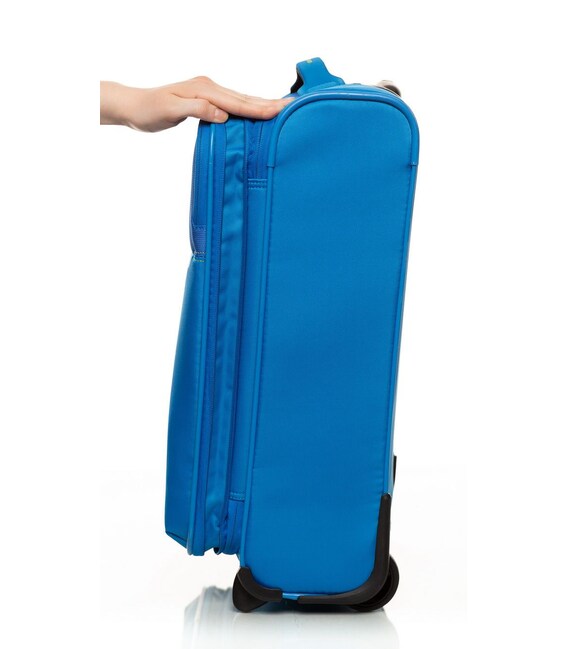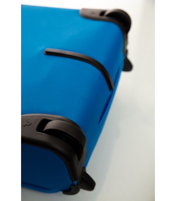 Валіза оснащена двома міцними колесами. На верхній панелі розташована текстильна підйомна ручка, для зручності переміщення є телескопічна ручка. На фронтальній поверхні є глибока кишеня, що закривається на блискавку, а також невелика кишеня на блискавці з двома бігунками і стримуючими кутами.