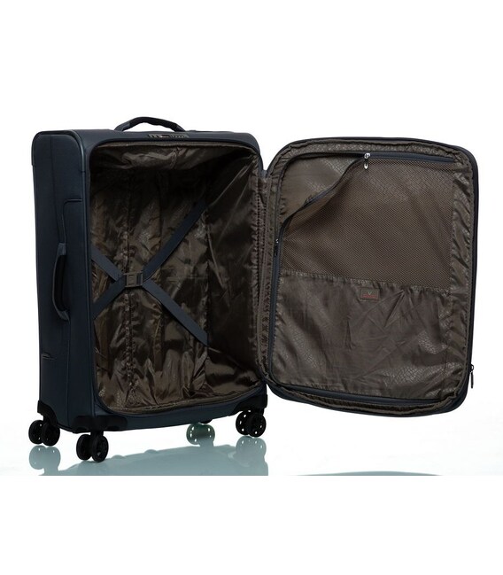 Конструкція валізи є легкою і міцною, завдяки поліпропіленовому каркасу, а подвійні колеса надають більшої стійкості і вантажопідйомності. Лінійка виготовлена з поліестеру, надзвичайно зносостійкої, водовідштовхувальної і стійкою до розривів тканини, з металевими і гумовими вставками. Валізи з колекції Sidetrack володіють класичним і в той же час функціональним дизайном, завдяки наявності двох кишень на зовнішній панелі, системі розширення і подвійній захисній блискавки.