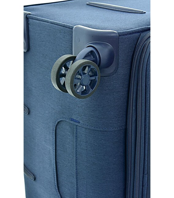 Велика валіза оснащена чотирма спареними маневреними колесами, які обертаються на 360̊. Для зручності переміщення є зручна телескопічна ручка, а також підйомні текстильні ручки на верхній і бічній поверхні. Валіза має систему розширення, що дозволяє збільшити об'єм валізи.