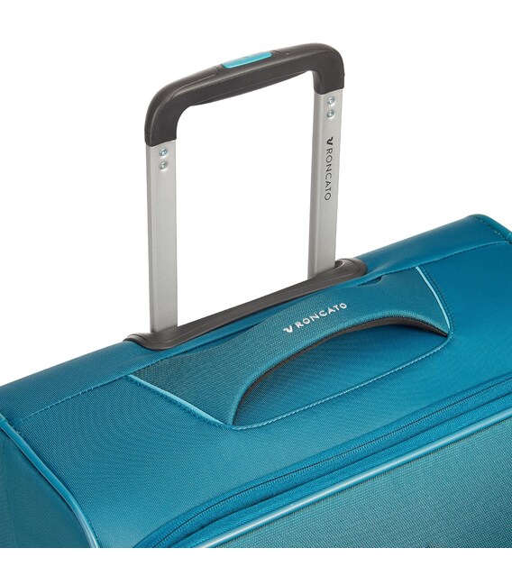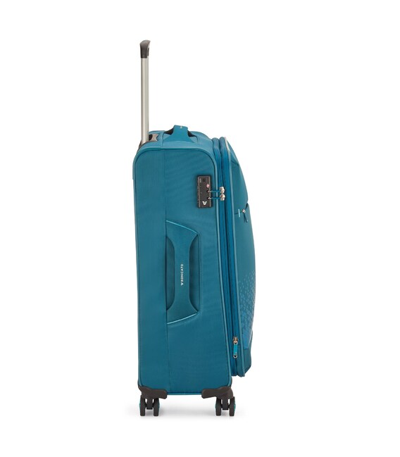 Середня валіза підходить для подорожей на тривалий час. Виконана з комбінованих тканин поліестеру/нейлон щільністю 600D, що дозволяє валізі бути зносостійкою і водовідштовхувальною. Оснащена містким основним відділенням з притискними ременями, також глибокою зовнішньою кишенею. Для зручності переміщення валіза має 4 спарених колеса, що обертаються на 360 градусів, регульованою телескопічною ручкою і м'якими ручками для перенесення на верхній частині і бічній частині валізи.