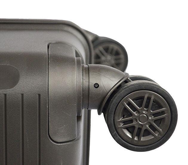 Німецький чемоданчик Carbon з колекції Atom в середній версії із самого міцного пластику - поліпропілену. Привабливий дизайн і функціональність валізи обов'язково сподобаються любителям подорожей. Оснащений чотирма колесами для зручного водіння, телескопічною висувною ручкою, кодовим замок. 4 колеса прогумовані колеса обертаються на 360 градусів. Основне відділення з еластичними лямками для запобігання зсуву одягу, відділення на блискавці. Наведені розміри також включають виступаючі елементи, такі як ручки або колеса. У малому розмірі валізи бічних ручок і підніжок немає).