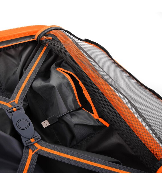Маленький чемодан оснащений 4 спареними, безшумними і маневреними колесами. Для зручності переміщення передбачені еластичні, підйомні пластикові ручки на верхній і бічний панелях, а також телескопічна ручка. Безпека і збереження багажу забезпечує вбудований кодовий замок з системою TSA. Чемодан закривається на блискавку і має відмінну внутрішню організацію.