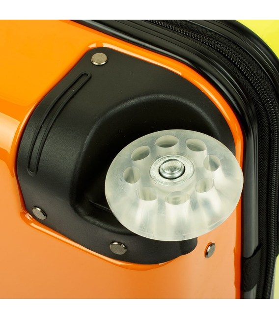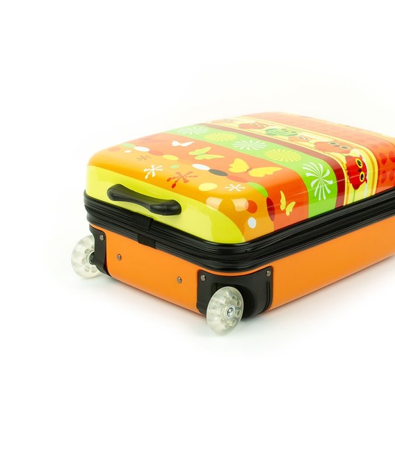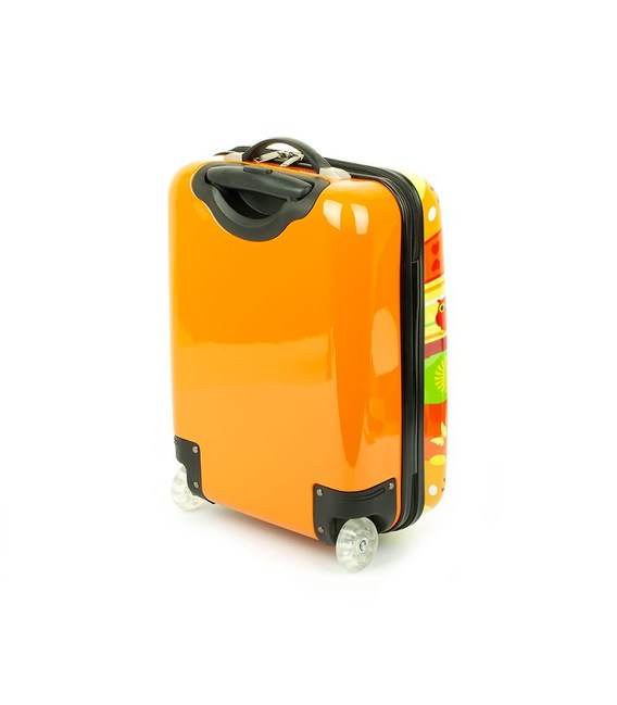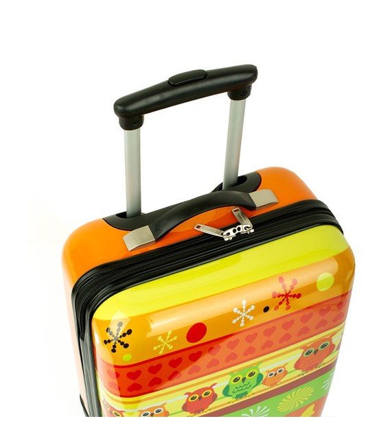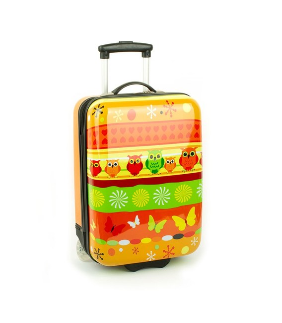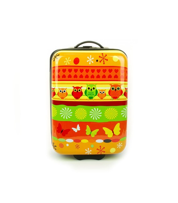 Дитяча пластикова валіза на колесах французького бренду Madisson з висувною ручкою помаранчевого кольору із зображенням сови