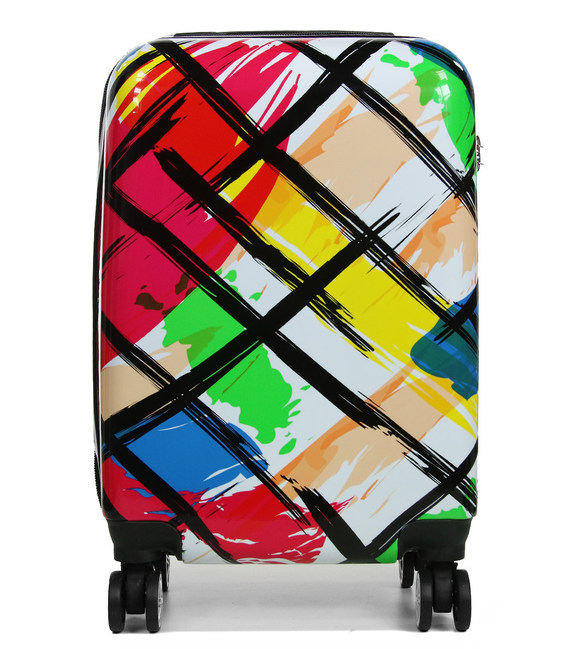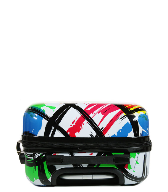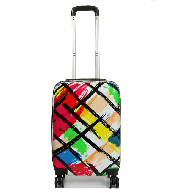 Стильна пластикова валіза на колесах французького бренду Madisson з висувною ручкою зі стильним прінтом