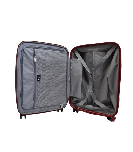 Чемодан закривається на водотталківающую блискавку, всередині передбачені притискні ремені для багажу в одному відділенні, друге закривається текстильної кришкою на блискавки.