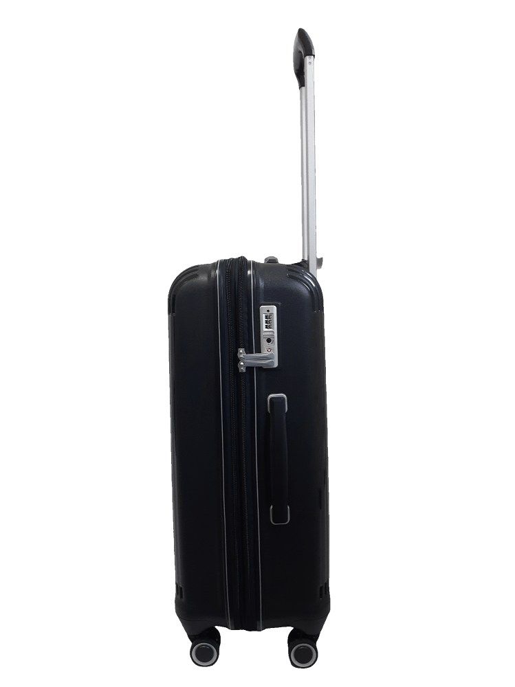 Чемодан оснащений чотирма спареними стійкими колесами, які вільно обертаються на 360 градусів.