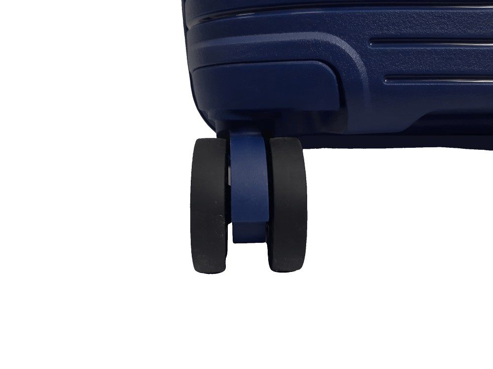 Чемодан оснащений чотирма спареними стійкими колесами, які вільно обертаються на 360 градусів.