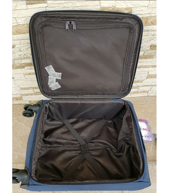 Дана валіза виготовлена з спеціально розроблених легких компонентів, завдяки яким зменшується вага валізи, що є вирішенням проблеми обмеження ваги багажу під час авіаперельотів. Всі основні елементи валізи виготовлені з легких матеріалів і міцної тканини. Ця модель відрізняється високою маневреністю і легкістю в управлінні, завдяки чотириколісною системі (чотири колеса з міцного і безшумного матеріалу, що обертаються на 360 градусів). В якості тканини вибрали нейлон, який має високу щільність (500D) та володіє водовідштовхувальними властивостями. Крім того, цей матеріал легко очищається від бруду і не піддається механічній деформації. Каркас цієї валізи складається з гнучких поліпропіленових пластин і ущільненого дна, за рахунок чого, не тільки прекрасно тримає свою форму, але і дозволяють зберігати в цілості всі предмети знаходяться в середині. Одяг може бути акуратно закріплений на фіксуючих ременях. Також в середині валізи розміщений великий бічний кишеня-сітка, ззовні, для невеликих речей розташована кишеня в який зручно складати все, що необхідно в дорозі. У маленькому розмірі немає збільшення. Численні тести проведені у Франції, доводять, що всі матеріали з яких виготовлені основні компоненти валізи є функціональні і придатні до експлуатації.