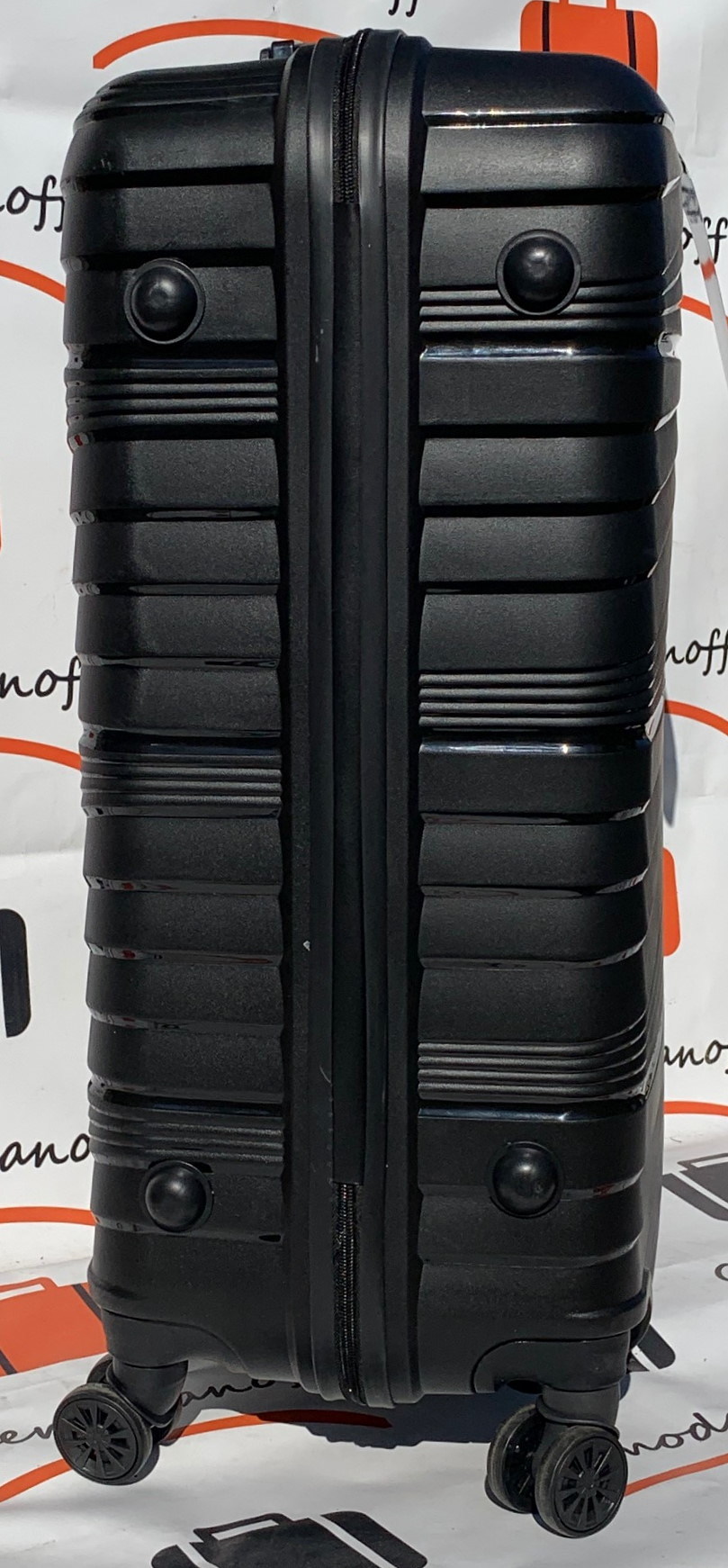 Німецький чемоданчик Carbon з колекції Atom в великій версії із самого міцного пластику - поліпропілену. Привабливий дизайн і функціональність валізи обов'язково сподобаються любителям подорожей. Оснащений чотирма колесами для зручного водіння, телескопічною висувною ручкою, кодовимй замок. 4 колеса прогумовані колеса обертаються на 360 градусів. Основне відділення з еластичними лямками для запобігання зсуву одягу, відділення на блискавці. Наведені розміри також включають виступаючі елементи, такі як ручки або колеса. У малому розмірі валізи бічних ручок і підніжок немає).