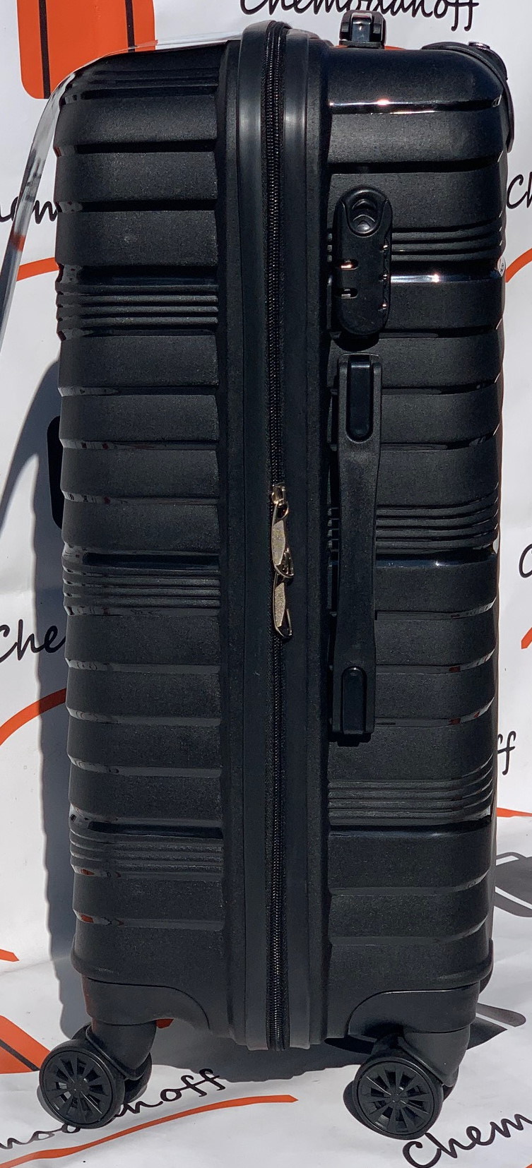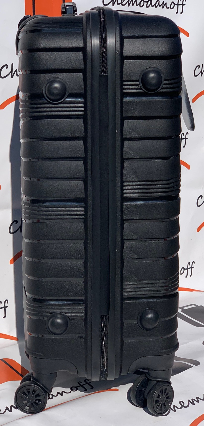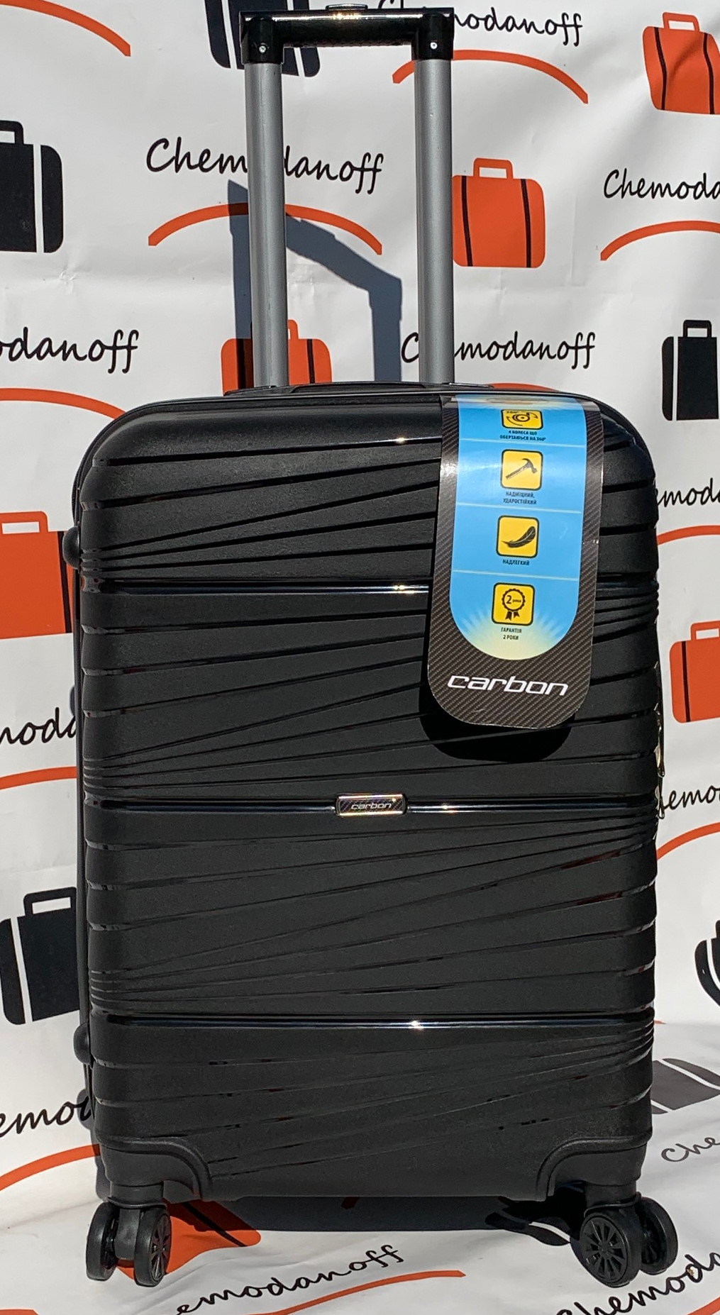 Німецький чемоданчик Carbon з колекції 2020 в середній версії із самого міцного пластику - поліпропілену. Привабливий дизайн і функціональність валізи обов'язково сподобаються любителям подорожей. Оснащений чотирма колесами для зручного водіння, телескопічною висувною ручкою, кодовим замок. 4 колеса прогумовані колеса обертаються на 360 градусів. Основне відділення з еластичними лямками для запобігання зсуву одягу, відділення на блискавці. Наведені розміри також включають виступаючі елементи, такі як ручки або колеса. У малому розмірі валізи бічних ручок і підніжок немає).
