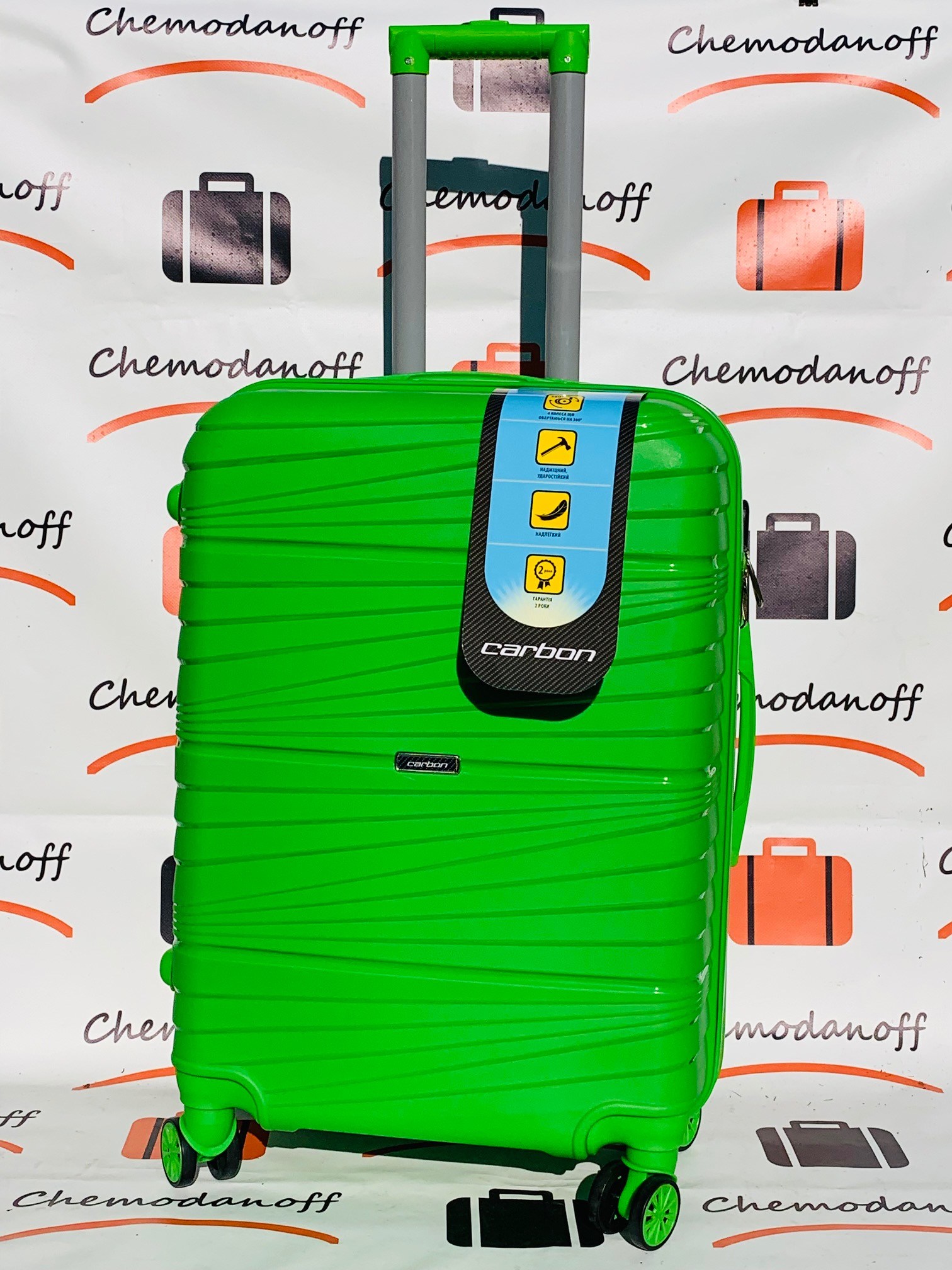Німецький чемоданчик Carbon з колекції 2020 в середній версії із самого міцного пластику - поліпропілену. Привабливий дизайн і функціональність валізи обов'язково сподобаються любителям подорожей. Оснащений чотирма колесами для зручного водіння, телескопічною висувною ручкою, кодовим замок. 4 колеса прогумовані колеса обертаються на 360 градусів. Основне відділення з еластичними лямками для запобігання зсуву одягу, відділення на блискавці. Наведені розміри також включають виступаючі елементи, такі як ручки або колеса. У малому розмірі валізи бічних ручок і підніжок немає).