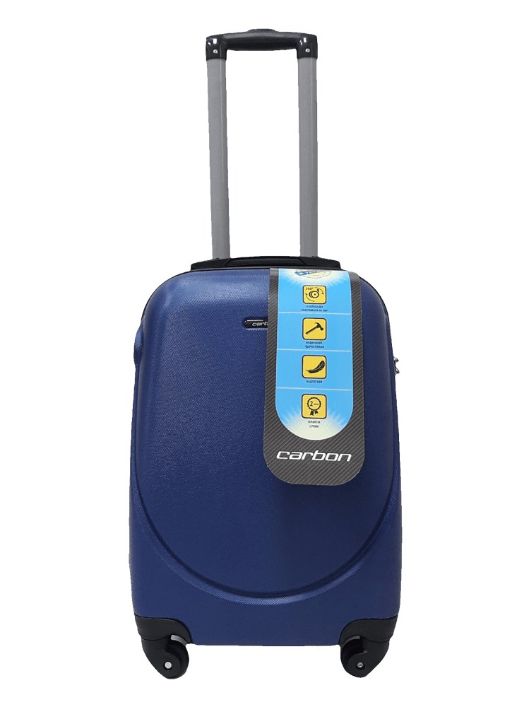 Німецький чемоданчик Carbon з колекції 310 в малій версії із міцного пластику -  ABS. Привабливий дизайн і функціональність валізи обов'язково сподобаються любителям подорожей. Оснащений чотирма колесами для зручного водіння, телескопічною висувною ручкою, кодовимй замок. 4 колеса прогумовані колеса обертаються на 360 градусів. Основне відділення з еластичними лямками для запобігання зсуву одягу, відділення на блискавці, повністю відповідає вимогам до ручної поклажі (Ryanair, Wizzair). Наведені розміри також включають виступаючі елементи, такі як ручки або колеса. У малому розмірі валізи бічних ручок і підніжок немає).