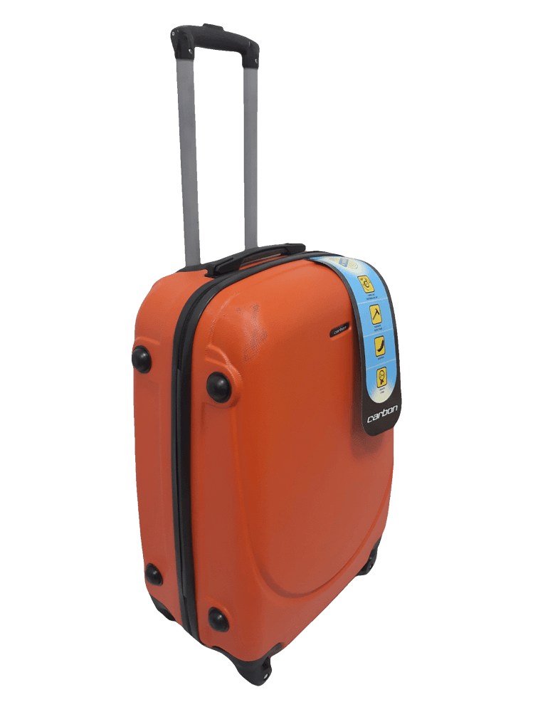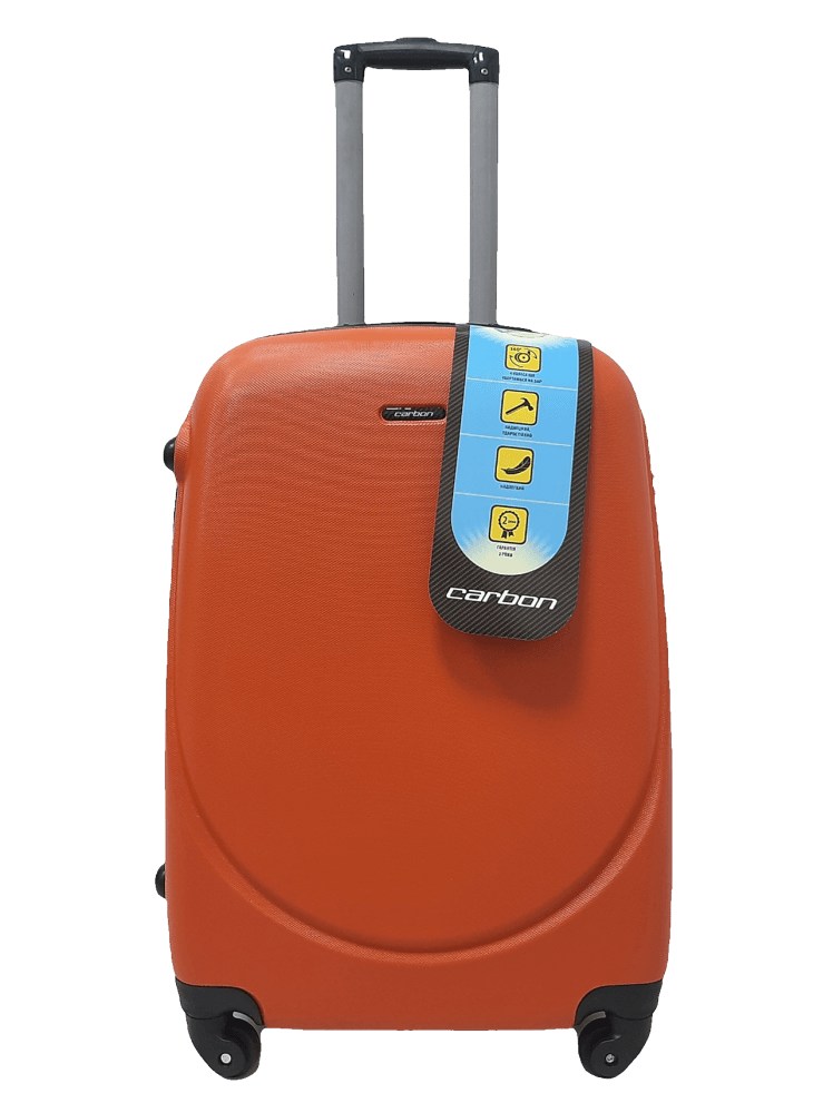 Німецький чемоданчик Carbon з колекції 310 в середній версії із самого пластику - ABS. Привабливий дизайн і функціональність валізи обов'язково сподобаються любителям подорожей. Оснащений чотирма колесами для зручного водіння, телескопічною висувною ручкою, кодовим замок. 4 колеса прогумовані колеса обертаються на 360 градусів. Основне відділення з еластичними лямками для запобігання зсуву одягу, відділення на блискавці. Наведені розміри також включають виступаючі елементи, такі як ручки або колеса. У малому розмірі валізи бічних ручок і підніжок немає).