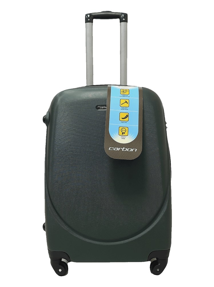 Німецький чемоданчик Carbon з колекції 310 в середній версії із самого пластику - ABS. Привабливий дизайн і функціональність валізи обов'язково сподобаються любителям подорожей. Оснащений чотирма колесами для зручного водіння, телескопічною висувною ручкою, кодовим замок. 4 колеса прогумовані колеса обертаються на 360 градусів. Основне відділення з еластичними лямками для запобігання зсуву одягу, відділення на блискавці. Наведені розміри також включають виступаючі елементи, такі як ручки або колеса. У малому розмірі валізи бічних ручок і підніжок немає).