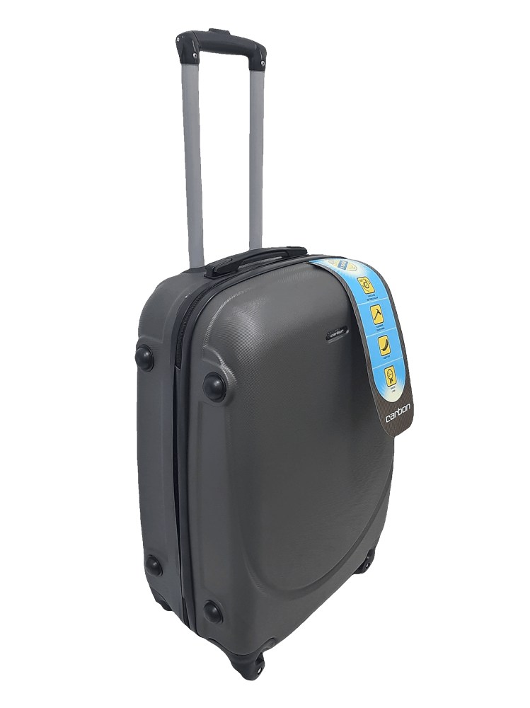 Німецький чемоданчик Carbon з колекції 310 в середній версії із самого пластику - ABS. Привабливий дизайн і функціональність валізи обов'язково сподобаються любителям подорожей. Оснащений чотирма колесами для зручного водіння, телескопічною висувною ручкою, кодовим замок. 4 колеса прогумовані колеса обертаються на 360 градусів. Основне відділення з еластичними лямками для запобігання зсуву одягу, відділення на блискавці. Наведені розміри також включають виступаючі елементи, такі як ручки або колеса. У малому розмірі валізи бічних ручок і підніжок немає).
