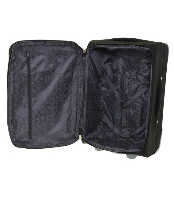 Дорожній текстильний чемодан від французького виробника Madisson. Матеріал корпусу виконаний з поліестера щільністю 900D. Тканина еластична, а також володіє водовідштовхувальними властивостями. Усередині 2 лотка, допіленних безліччю кишень і сіточок для зручності організації зібраних речей. Валізи комплекту в розмірах M-L мають блискавку розширювач. Усередині валізи є 2 відділення, одне з притискними ременями, інше закривається на блискавку. Зверху і збоку валізи розташовані ручки для перенесення його в вертикальному або горизонтальному положеннях. Висувна телескопічна ручка на металевій основі з кнопкою для фіксації висоти.