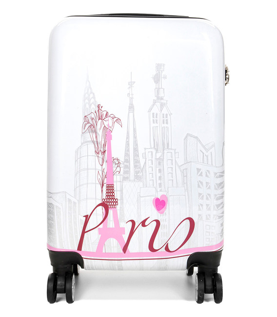 Стильна пластикова валіза на колесах французького бренду Madisson з висувною ручкою зі стильним прінтом
