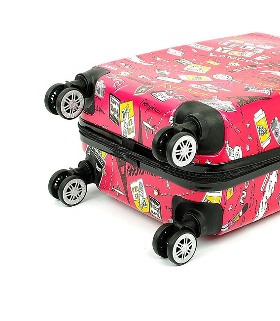 Стильна пластикова валіза на колесах французького бренду Madisson з висувною ручкою зі стильним прінтом