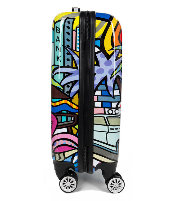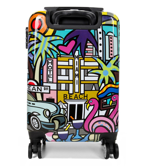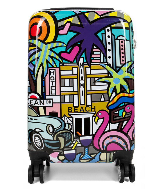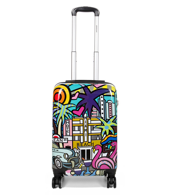 Стильна пластикова валіза на колесах французького бренду Madisson з висувною ручкою зі стильним прінтом