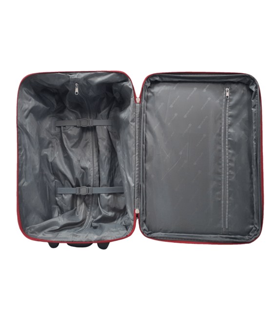 Дана валіза виготовлена з спеціально розроблених легких компонентів, завдяки яким зменшується вага валізи, що є вирішенням проблеми обмеження ваги багажу під час авіаперельотів. Всі основні елементи валізи виготовлені з легких матеріалів і міцної тканини. Ця модель відрізняється високою маневреністю і легкістю в управлінні, завдяки чотириколісною системі (чотири колеса з міцного і безшумного матеріалу, що обертаються на 360 градусів). В якості тканини вибрали поліестер, який має високу щільність (600D) та володіє водовідштовхувальними властивостями. Крім того, цей матеріал легко очищається від бруду і не піддається механічній деформації. Каркас цієї валізи складається з гнучких поліпропіленових пластин і ущільненого дна, за рахунок чого, не тільки прекрасно тримає свою форму, але і дозволяють зберігати в цілості всі предмети знаходяться в середині. Одяг може бути акуратно закріплений на фіксуючих ременях. Також в середині валізи розміщений великий бічний кишеня-сітка, ззовні, для невеликих речей розташована кишеня в який зручно складати все, що необхідно в дорозі. У маленькому розмірі немає збільшення. Численні тести проведені у Франції, доводять, що всі матеріали з яких виготовлені основні компоненти валізи є функціональні і придатні до експлуатації.