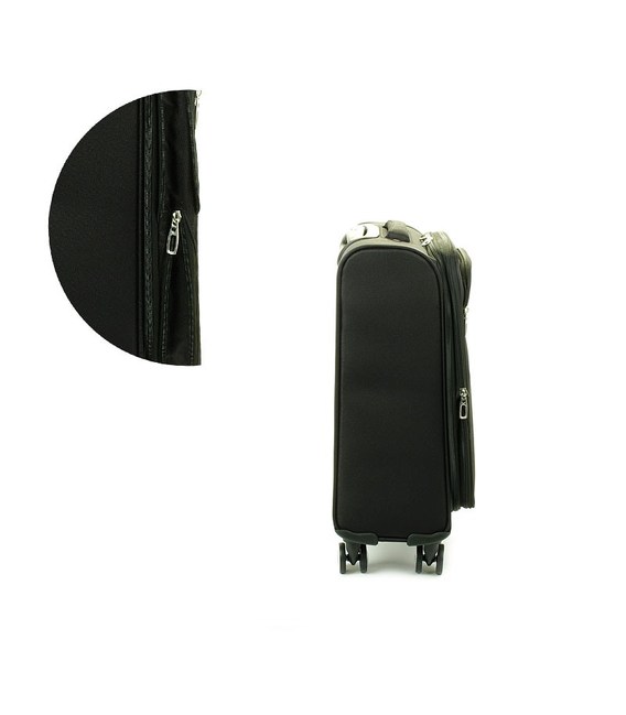 На передній панелі валізи є кишеня для дрібниць або документів. Зверху та збоку валізи розташовані ручки для перенесення в вертикальному або горизонтальному положеннях. На бічній стороні валізи маленькі ніжки для захисту и стійкості валізи в горизонтальному положенні.