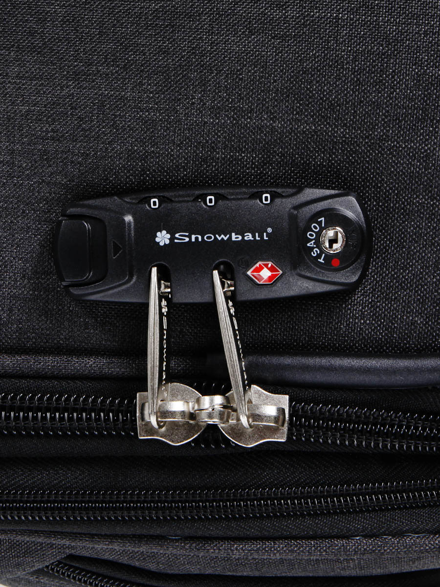 Валіза Snowball Jean забезпечує приємне і плавне транспортування, він оснащений телескопічною двотрубною ручкою і чотирма різноспрямованими колесами для ідеального управління траєкторією руху на дорозі, а також для більшої легкості. Дві ручки для перенесення, бічна та передня, дозволяють швидко підняти валізу і покласти її в багажник поїзда або в багажник вагона. Навколо валізи розміщено посилення, щоб максимально вберегти його від зносу. Нарешті, щоб запобігти злому та гарантувати вам велику безпеку, він оснащений кодовим замком TSA, який ідеально підходить, зокрема, для поїздок до США. На передні кишені можна додати замок, оскільки повзунки просвердлені.