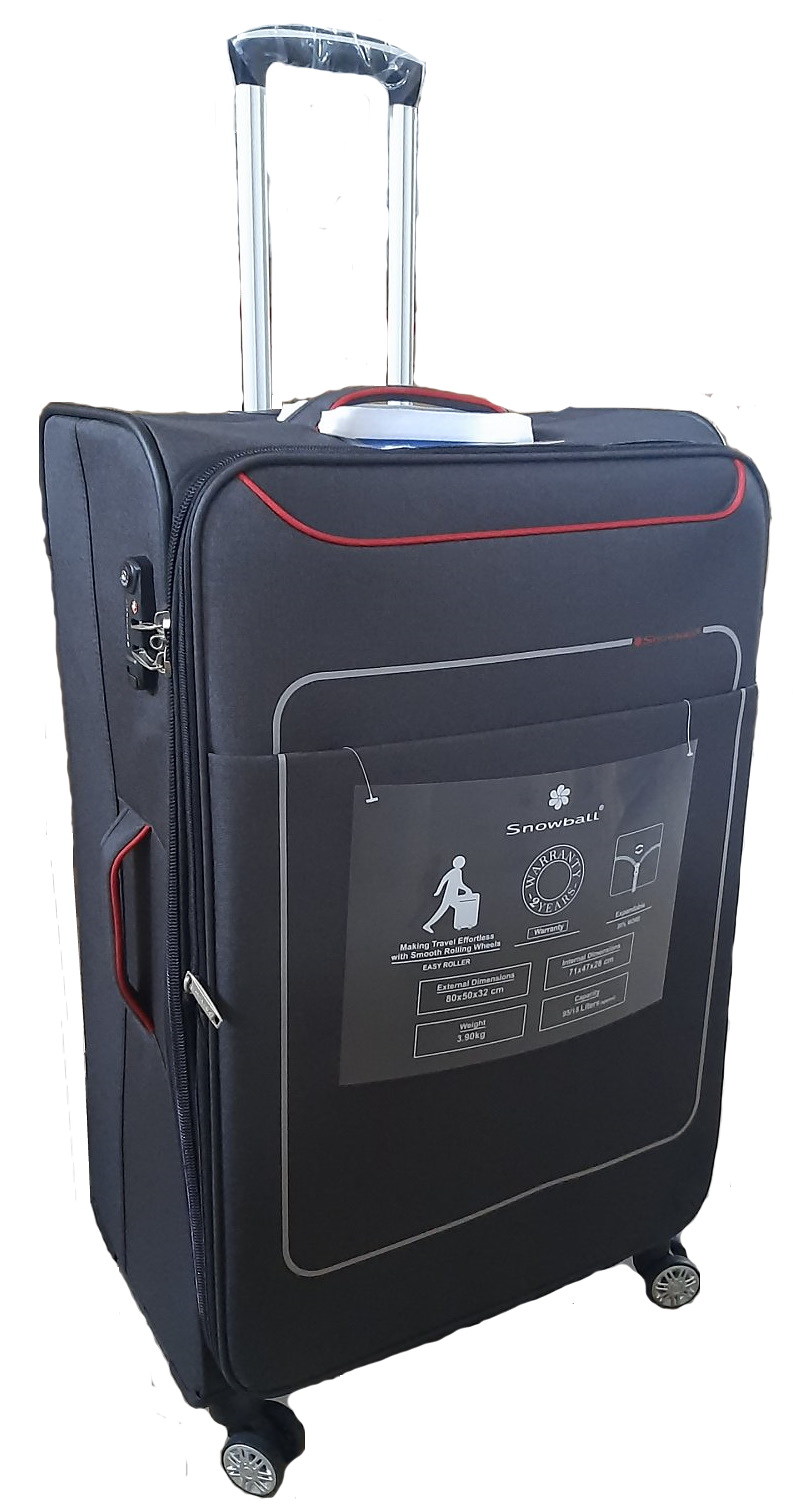 Вбудований комбінований замок TSA. 4 зручні і якісні колісні пари. Висувна ручка для поручня з замком. Логотип Snowball в передній частині валізи. Всередині є захисні ремені, велика кишеня на блискавці.