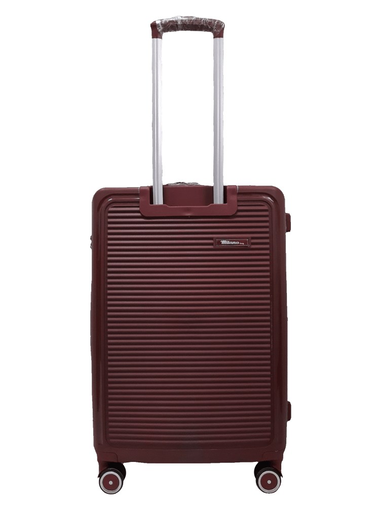 Валіза Milano модель 024 Країна виробник – Єгипет. Матеріал валізи 100% поліпропілен - стійкий до ударів та подряпин. Особливістю даної моделі є фурнітура у колір валізи. Колеса поліуретанові подвійні прогумовані на підшипниках, що обертаються, на 360 градусів. У кожному розмірі знаходиться бічний кодовий замок TSA. І додаткове розширення