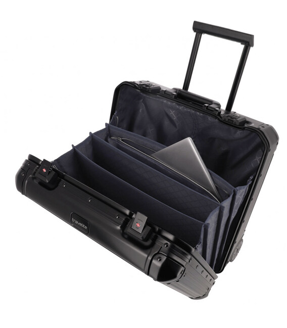 Travelite NEXT TL079912 (45x40x20 см / алюміній / Black) – алюмінієвий бізнес-кейс на 34 літри з кейсовими замками TSA, відділенням для ноутбука 15,6 дюймів та знімним чохлом для речей. Створений спеціально для ділових поїздок, щоб розмістити не лише ваші речі, а й документи, портативну електроніку. Інноваційна ручна поклажа для робочих поїздок із професійно організованим простором, який підвищить вашу продуктивність.Детальна інформація про модель Travelite 079912 01✔ Серія преміального дорожнього багажу NEXT.✔ Зовнішній матеріал - алюміній - легкий та витривалий метал, який завоював почесне місце у виробництві багажу.✔ Дизайн/колір: Black (чорний).✔ Відповідає параметрам ручної поклажі.✔ Інноваційний тип закриття: 2-точкова кейсова застібка із кодовими замками TSA.✔ На спинці є ремінець для фіксації на висувній ручці більшого багажу.✔ Легкий хід висувної ручки з кількома точками фіксації висоти.✔ 2 колеса та передні ніжки-упори.✔ Міцна верхня ручка для перенесення в руках.• Одне відділення із роздільниками.• Знімний чохол на блискавці для речей.• Спеціальна кишеня на блискавці для ноутбука до 15,6 дюймів.