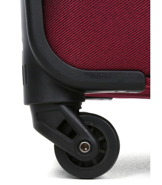 Безшумне і плавне переміщення забезпечать 4 подвійних поліуретанових колеса на підшипниках, що обертаються на 360 град, надаючи валізі додаткову маневреність і даючи можливість переміщати його у вертикальному положенні.