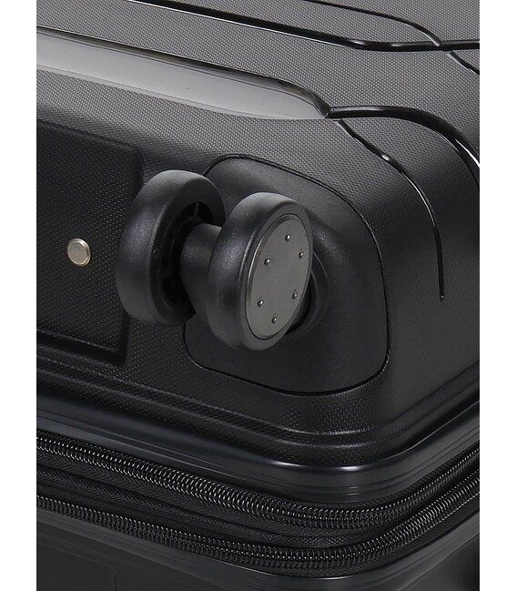 Чемодан оснащений чотирма спареними стійкими колесами, які вільно обертаються на 360 градусів.