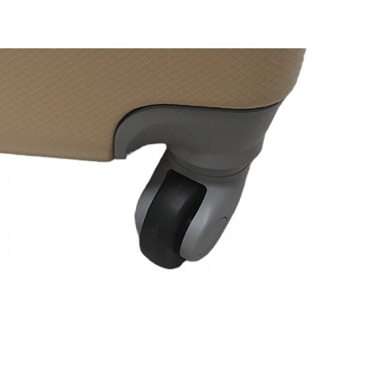 Легка модель виготовлена з ABS-пластику. Валіза має шорстку поверхню, на якій практично не видно подряпин. Модель оснащена висувною ручкою, кодовим замком та чотирма колесами, які обертаються на 360 градусів. Всередині є два відділи, які розділяються перегородкою на блискавці.