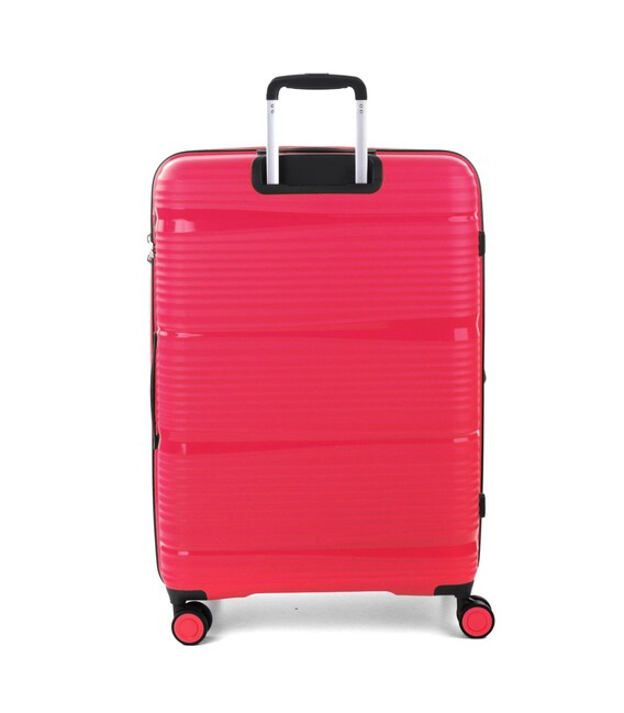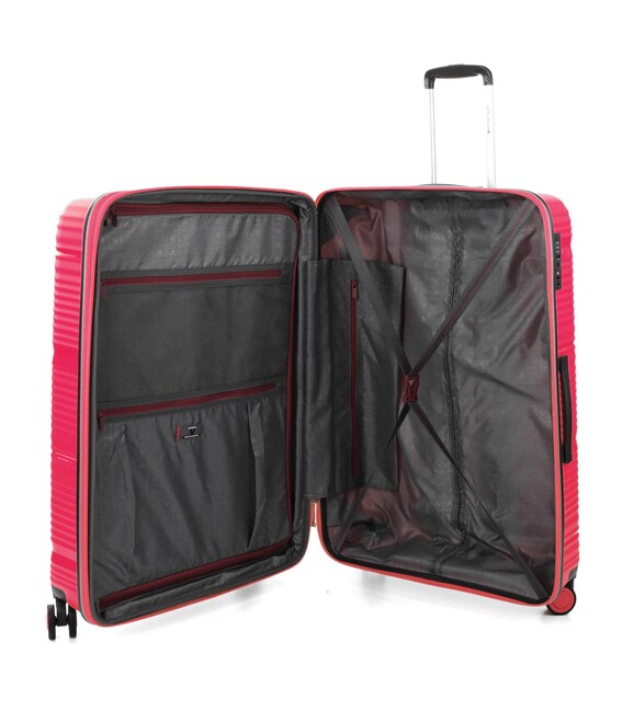 Великий чемодан підходить для тривалих поїздок або для всієї родини. Оснащений 4 спареними, безшумними і маневреними колесами. Для зручності переміщення передбачені еластичні, підйомні пластикові ручки на верхній і бічний панелях, а також телескопічна ручка. Безпека і збереження багажу забезпечує вбудований кодовий замок з системою TSA. Чемодан закривається на блискавку і має відмінну внутрішню організацію.