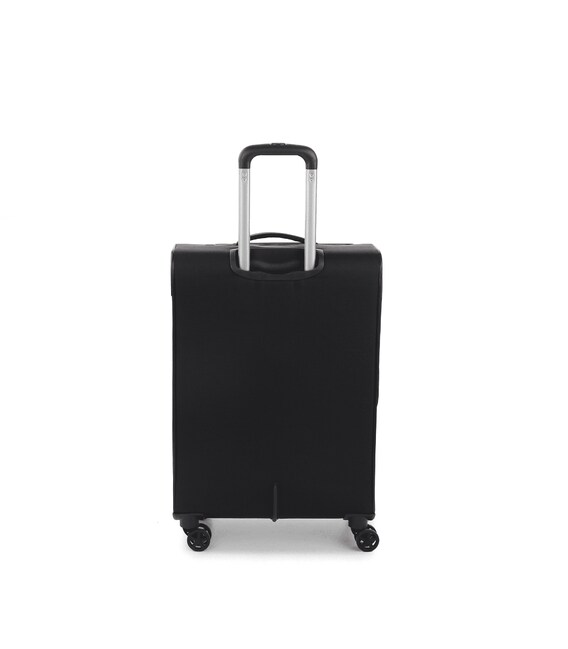Середня тканинна валіза має можливість збільшити об'єм до 78 літрів за рахунок розширення, виконана з комбінації нейлону 840d та поліестеру, що забезпечує зносостійкість. Валіза закривається на блискавку, оснащена кодовим замком із системою TSA, що безперечно зручно при перельотах, оскільки дозволить службам аеропорту при необхідності досліджувати вміст багажу, не завдаючи шкоди Вашій власності. Має чотири маневрені колеса повертаються на 360°. Телескопічна ручка з фіксацією, також є міцні текстильні ручки на бічній та верхній поверхні для зручності перенесення. Фронтальна поверхня оригінально декорована, на ній розташована глибока кишеня для речей першої необхідності.