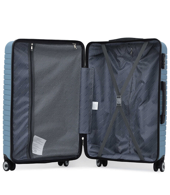 - Валіза має текстильну перегородку на блискавці, яка розділяє внутрішній простір на два основні відділення, та оснащена кишенею на блискавці для дрібних речей.