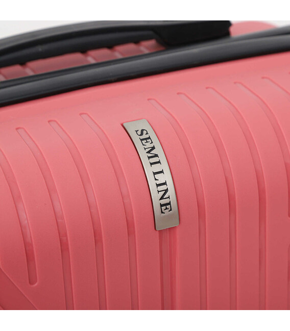 Поліпропілен, з якого зроблені валізи Semi Line T5610, на сьогоднішній день є оптимальним матеріалом з точки зору поєднання міцності і ваги. При випадкових ударах корпус валізи лише прогинається, та приймає початкову форму після зняття навантаження. Валіза оснащена легкою алюмінієвою телескопічною ручкою, а ручки для перенесення валізи в руках мають м'яку гелеву підкладку. Кодовий замок покликаний захистити вміст вашої валізи. Чотири бічні ніжки дозволяють поставити валізу на бік не пошкодивши її. Поєднання матових і глянцевих смужок на лицьовому і тильному фасаді валізи створює цікавий візерунок і гру світла.