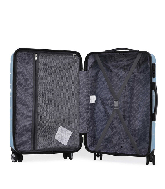 - Валіза має текстильну перегородку на блискавці, яка розділяє внутрішній простір на два основні відділення, та оснащена кишенею на блискавці для дрібних речей.