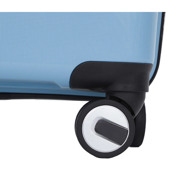 - Подвійні колеса - дана модель оснащена чотирма обертовими на 360 ° здвоєними колесами. Здвоєні колеса забезпечують кращий розподіл ваги та стійкість валізи, відмінне зчеплення, маневреність та мають більшу зносостійкість. Колеса кріпляться на 4 гвинти зсередини, що забезпечує високу стійкість при ударному навантаженні з будь-якого боку і дозволяє їх замінити у разі зносу.