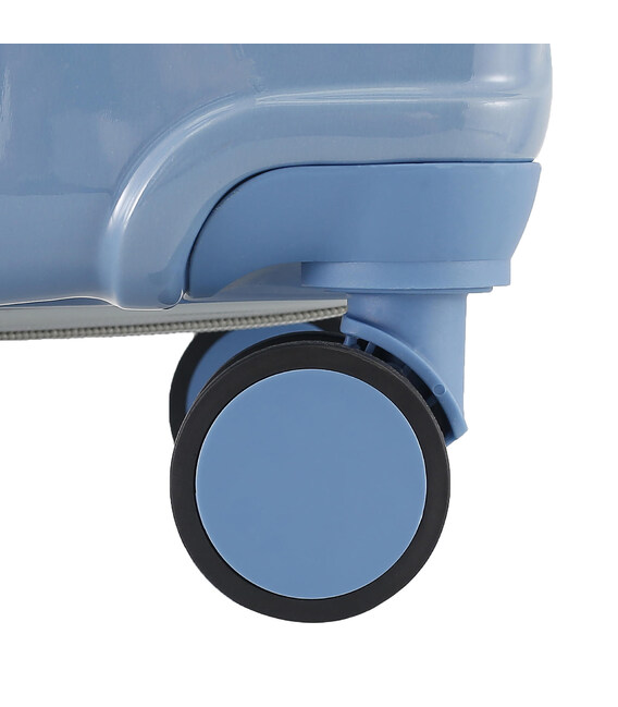 - Подвійні колеса великого діаметру - дана модель оснащена чотирма обертовими на 360 ° здвоєними колесами збільшеного діаметру. Здвоєні колеса забезпечують кращий розподіл ваги та стійкість валізи, відмінне зчеплення, маневреність та мають більшу зносостійкість. Великий діаметр колес забезпечує більш плавне кочення валізи навіть по нерівним поверхням. Колеса кріпляться на 4 гвинти зсередини, що забезпечує високу стійкість при ударному навантаженні з будь-якого боку і дозволяє їх замінити у разі зносу.