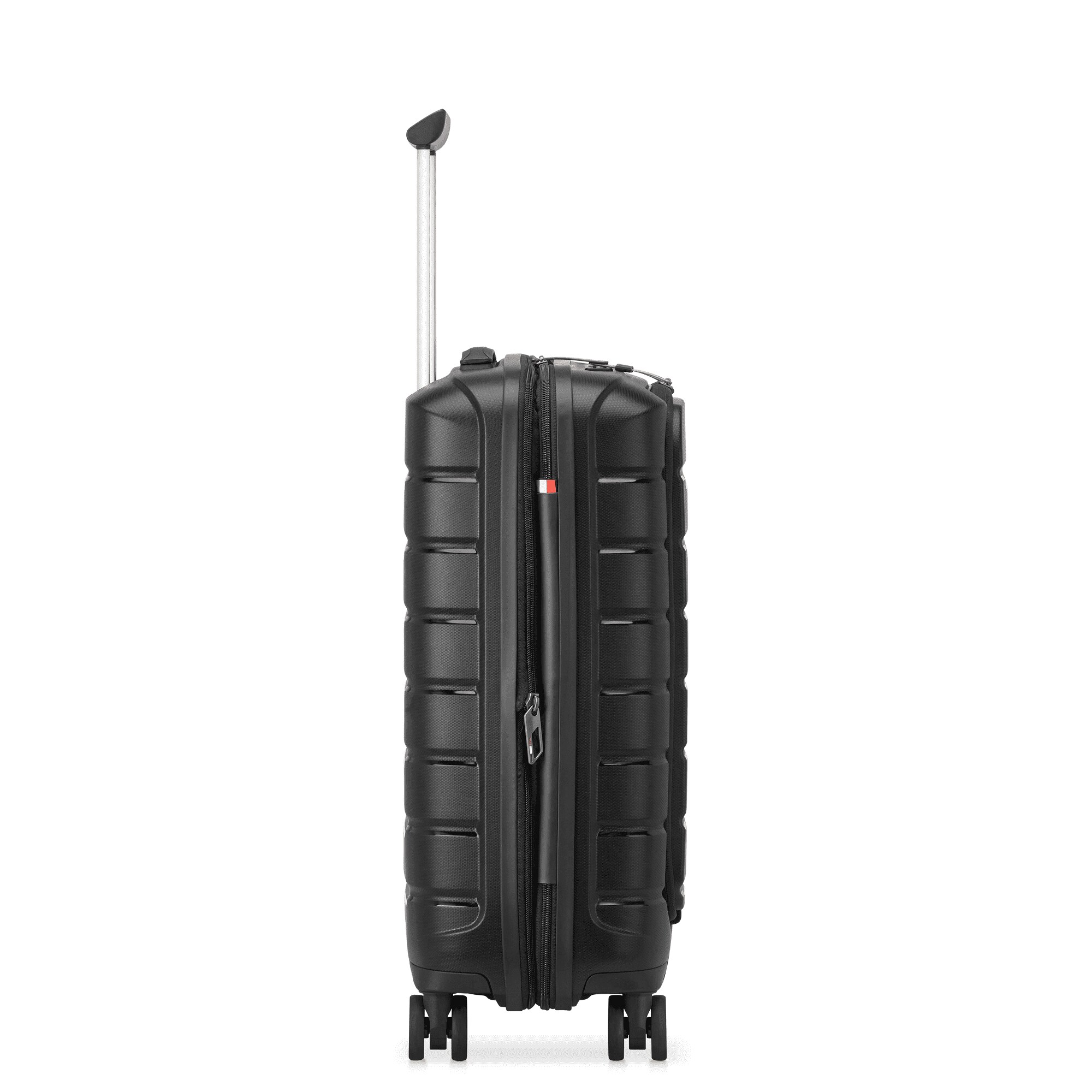 Маленький чемодан оснащений 4 спареними, безшумними і маневреними колесами. Для зручності переміщення передбачена еластична, підйомна пластикова ручка на верхній панелі, а також телескопічна ручка. Безпека і збереження багажу забезпечує вбудований кодовий замок з системою TSA. Чемодан закривається на блискавку і має відмінну внутрішню організацію.