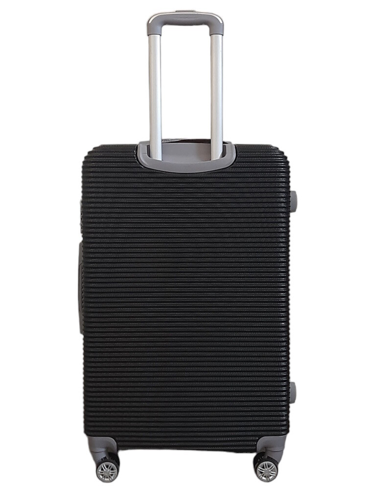 Легка модель виготовлена з ABS-пластику. Валіза має шорстку поверхню, на якій практично не видно подряпин. Модель оснащена висувною ручкою, кодовим замком та двійними чотирма колесами, які обертаються на 360 градусів. Всередині є два відділи, які розділяються перегородкою на блискавці.