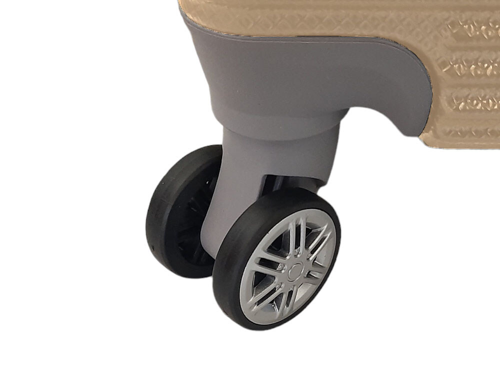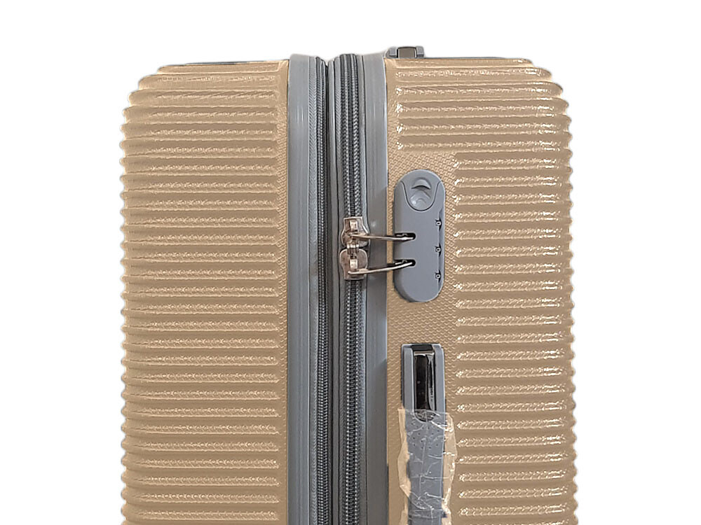 Легка модель виготовлена з ABS-пластику. Валіза має шорстку поверхню, на якій практично не видно подряпин. Модель оснащена висувною ручкою, кодовим замком та двійними чотирма колесами, які обертаються на 360 градусів. Всередині є два відділи, які розділяються перегородкою на блискавці.