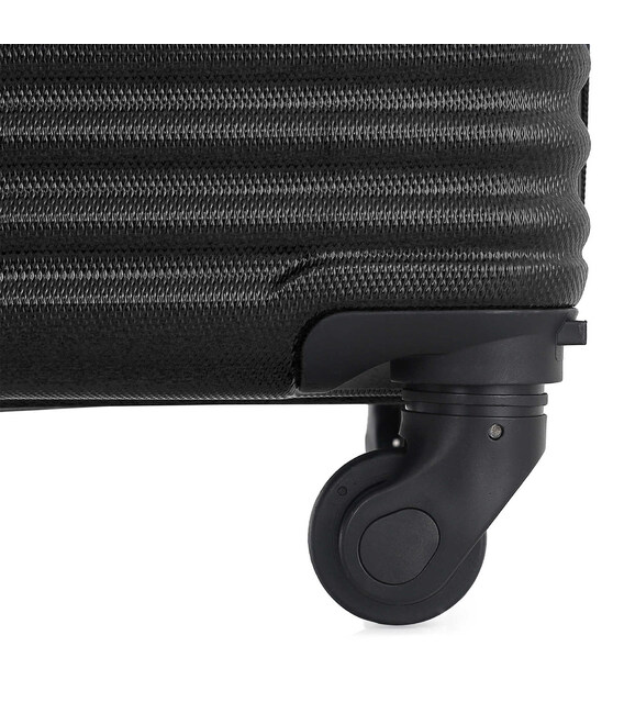 | Дополнительные характеристики | Кодовый замок; Четыре полноповоротных колеса обеспечивают высокую маневренность, плавное качение, крепятся на 4 винта изнутри; Выдвижная телескопическая, алюминиевая ручка фиксируется в четырех положениях; Ручка с мягкой гелевой подложкой в верхней части части чемодана для транспортировки в вертикальном положении; Текстильная перегородка на молнии; Элас |