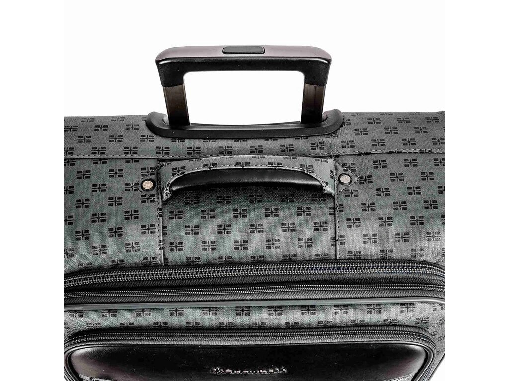 Конструкція валізи є легкою та міцною, виготовлена з PVC-шкіри, надзвичайно зносостійкої, водовідштовхувальної та стійкої до розривів тканини, а також легко очищається від бруду. Валіза має класичний і в той же час функціональний дизайн.