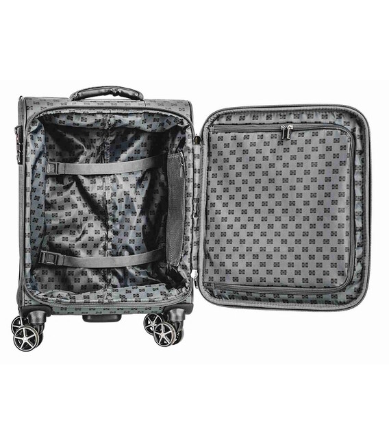 Усередині валізи просторе відділення з ременями для фіксації одягу.