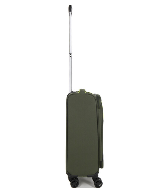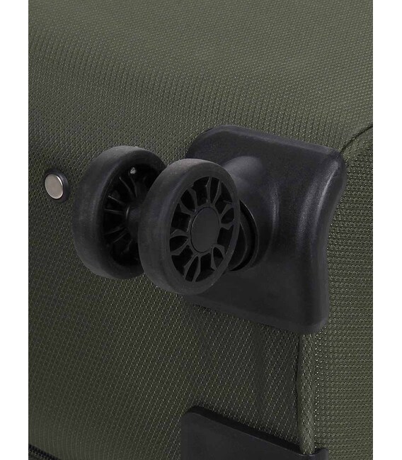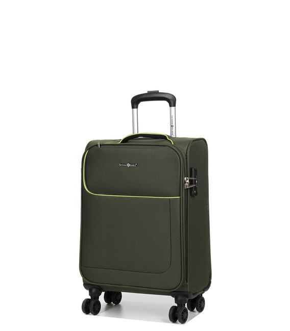 Салонна валіза Snowball Montevideo має регульовану двотрубну візок і 4 здвоєні колеса для комфортного перекочування на 360° і підвищеної стабільності. З боку безпеки він має тримач для етикеток, дуже простий у використанні кодовий замок TSA та перфоровані виступи на блискавці основного відділення. Щоб піднятися по сходах, не пошкодивши руки, його ручка для перенесення має м'які накладки.