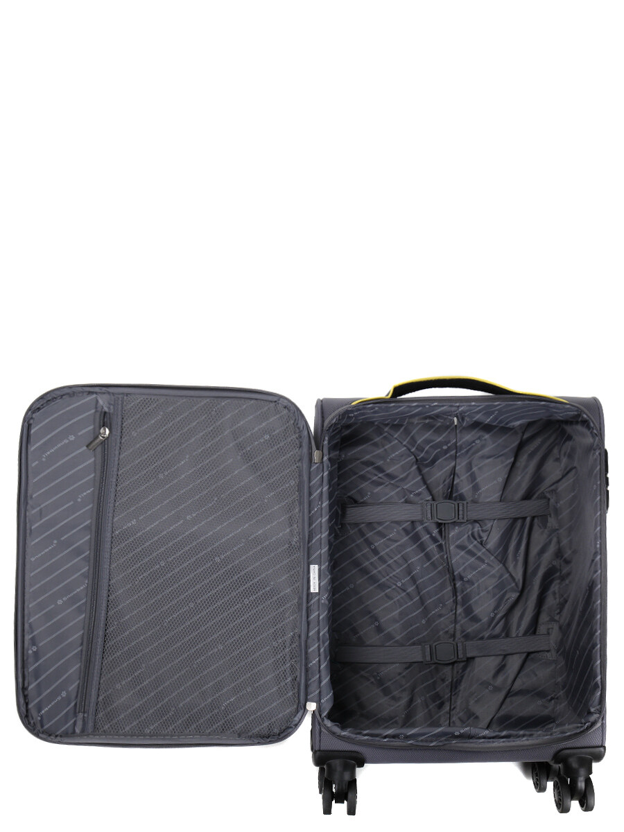 Відділення валізи Snowball Montevideo на 4 колесах має 4 еластичні ремені, щоб наряди були акуратно складеними під час подорожі. Сітчаста кишеня на рухомій перегородці дозволяє швидко знайти аксесуари, засунуті всередину. Дві передні кишені забезпечують швидкий доступ до квитків на поїзд або літак для маленького, а також до книжок та інших зошитів для старшого.